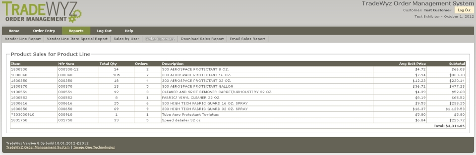 Exhibitor Line Report |  Exhibitor Line Item Report |  Exhibitor Sales By User Report |  Exhibitor Show Summary Report |
